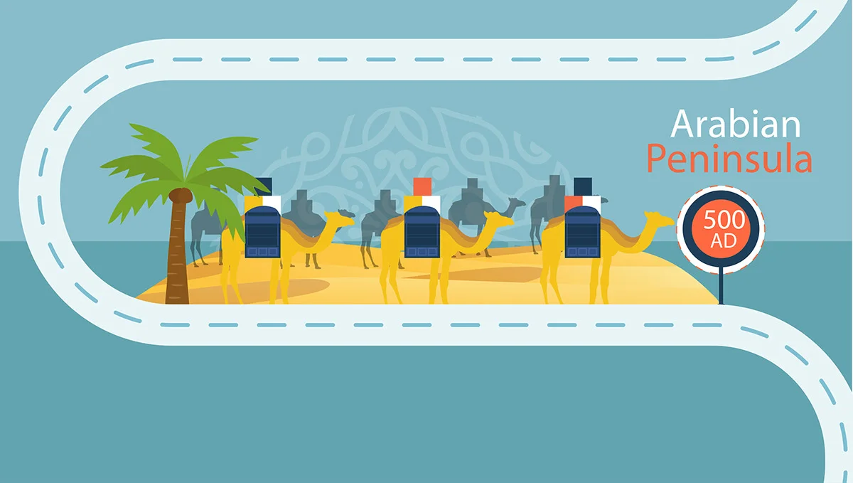 A timeline animation for Qatar Islamic Insurance Company — decades of takaful history told through consistent character design, so the continuity of style mirrors the continuity of service.